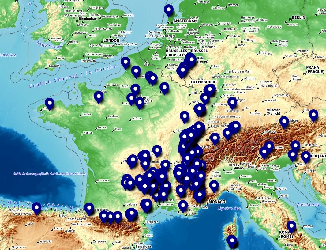 A localização dos buracos frios na França e na Europa Ocidental. © framacarte.org