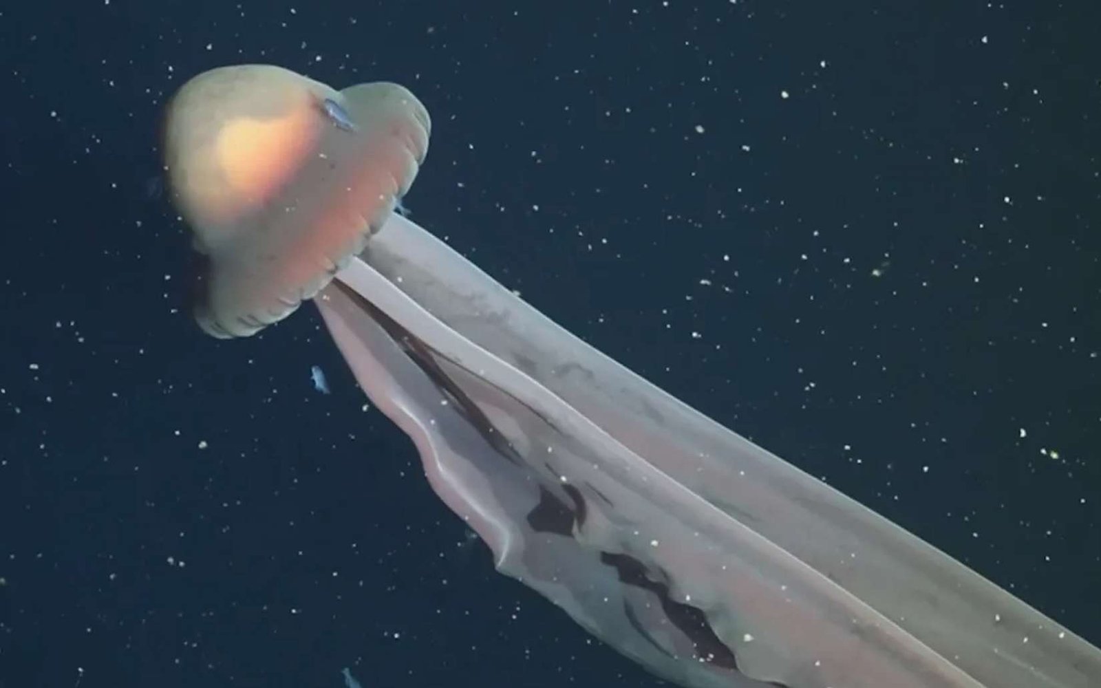 Esses apêndices espetaculares aparecem claramente em imagens recentes capturadas por um robô submarino de Instituto Oceânico Schmidt. A água-viva foi filmada durante uma exploração do cânion subaquático Colorado-Rawson, na costa da Argentina. Sua silhueta laranja-avermelhada translúcidoondulando lentamente na escuridão, explica a origem do seu apelido ” fantasma “.