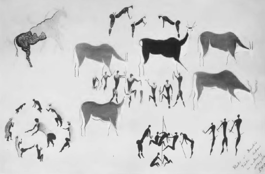 Algumas dessas práticas continuaram até a década de 1970. Mas, com a colonização e as convulsões sociais, as suas coreografias, os seus contextos e os seus significados rituais foram em grande parte transformados ou perdidos. A arte rupestre antiga parece, portanto, ser um testemunho insubstituível de tradições musicais e espirituais que agora desapareceram.