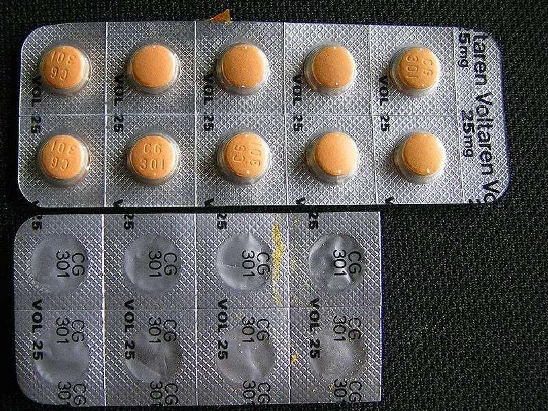 Em vários países, o diclofenaco é comercializado com o nome Voltaren ou Voltarene. © Doutor céu outonal, Wikipedia, CC por 3.0