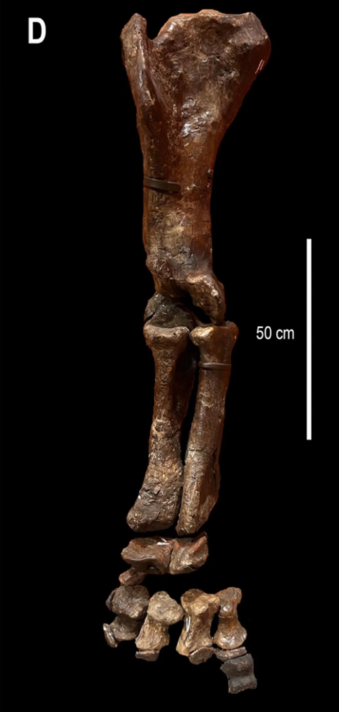 Reconstrução dos ossos do membro anterior direito deste estegossauro gigante, revelando proporções extraordinárias em comparação com os exemplares conhecidos. © Rebecca Hunt-Foster