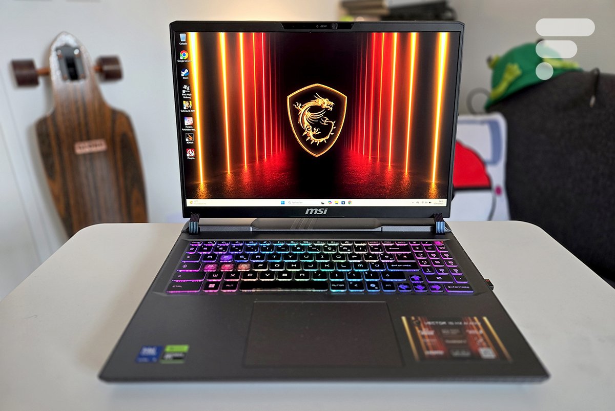 Tudo é completado por um SSD de 1 TB, essencial para beneficiar de tempos de carregamento consideravelmente reduzidos. Você deve ter entendido: o Vector 16 HX AI é ultraeficiente… e portanto muito barulhento. Levado à potência máxima, ele não hesita em ligar seus ventiladores no máximo para manter as temperaturas baixas. Esse é o jogo. Em termos de autonomia, com utilização em escritório, conte com entre 4 e 5 horas de utilização. Mantenha seu carregador por perto, então.