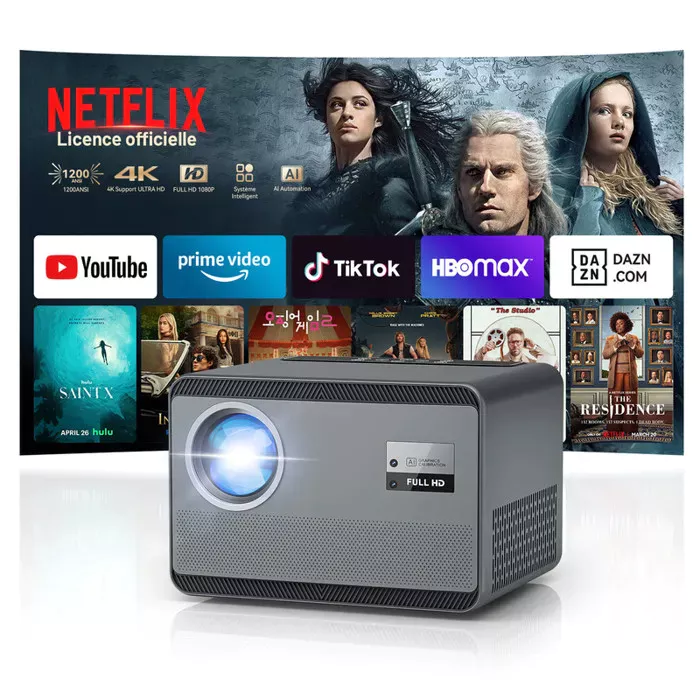 【Certificado Netflix】 Projetor de vídeo 4K com suporte para foco automático Keystone-35000 Lumens-WiF Bluetooth 1080P Projetor Full HDa partir de 199,99€ no Cdiscount