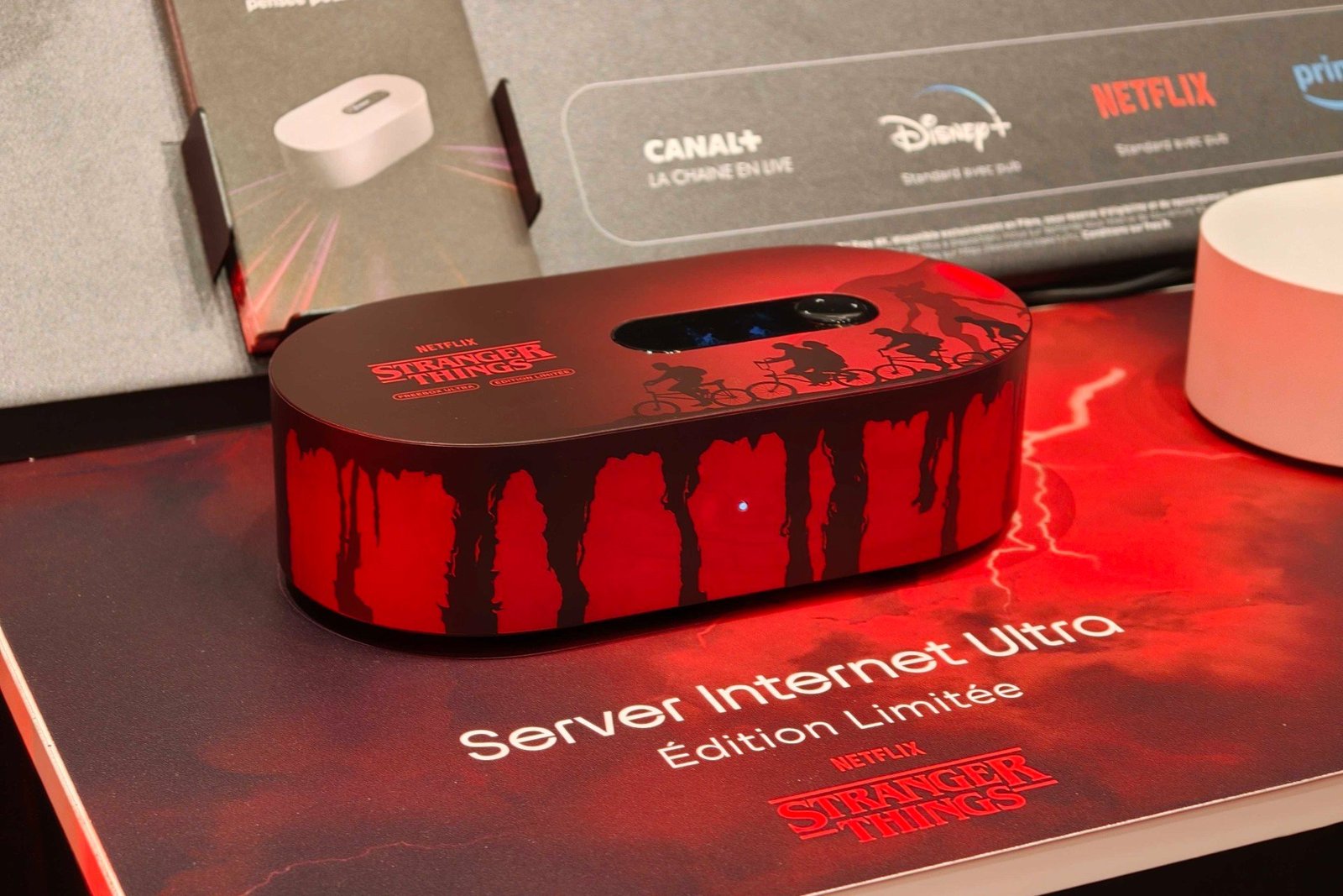 Por que essa reforma? Livre sendo Livre, é necessariamente uma questão de Caixa. Mais precisamente, a operadora está lançando uma edição limitada do Freebox Ultra nas cores Coisas estranhas. Além da cor vermelha, podemos ver os heróis da série andando de bicicleta. Estes são, a priori, adesivos simples do que vimos.