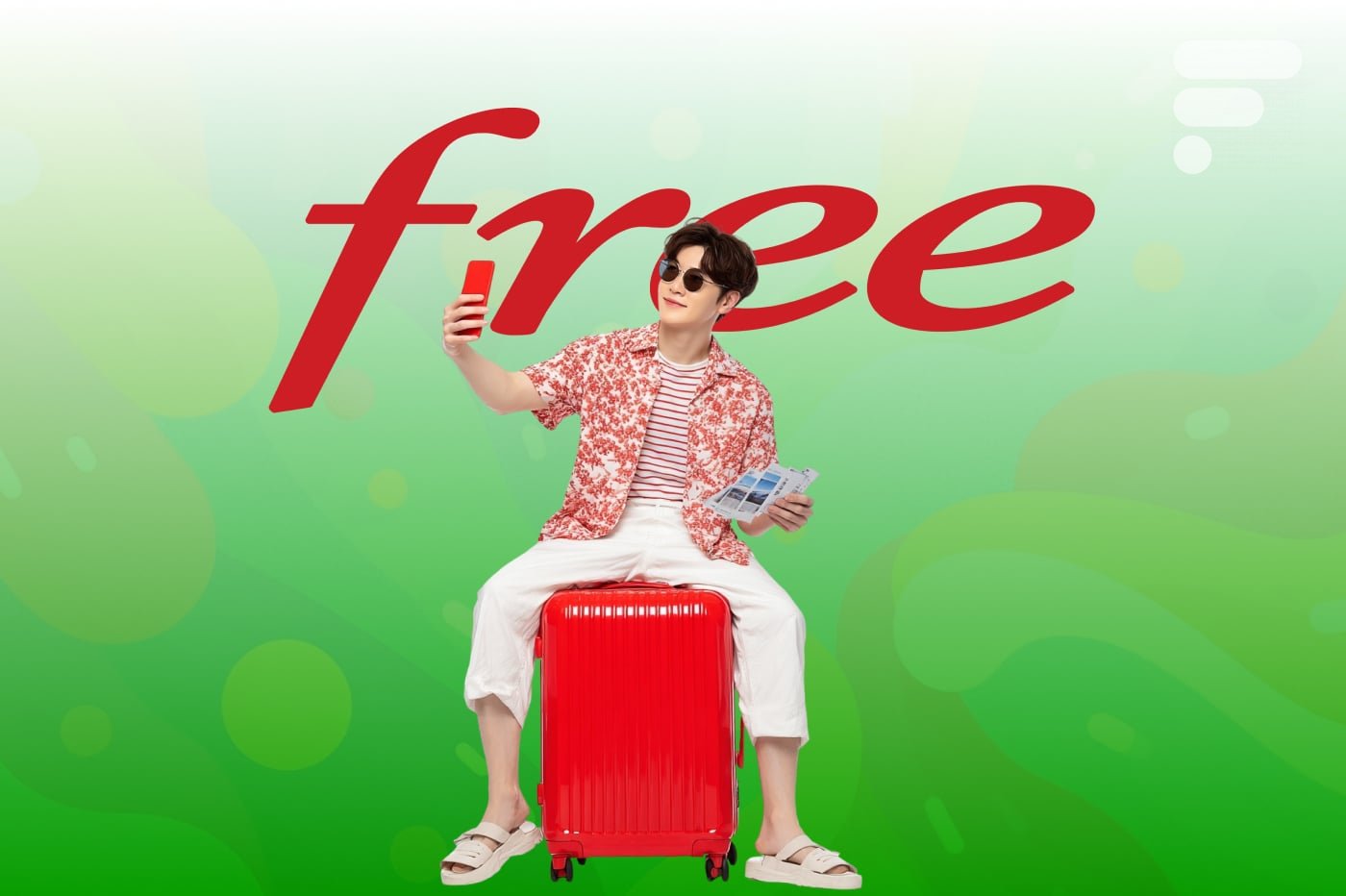 Existem duas pistas óbvias nesta imagem em relação ao conteúdo do anúncio. Por um lado, vemos uma mala, símbolo da viagem, e por outro, um smartphone. Alguns podem ver isso como mais uma pista sobre um possível “ Telefone grátis », mas reconhecemos principalmente um Apple iPhone.