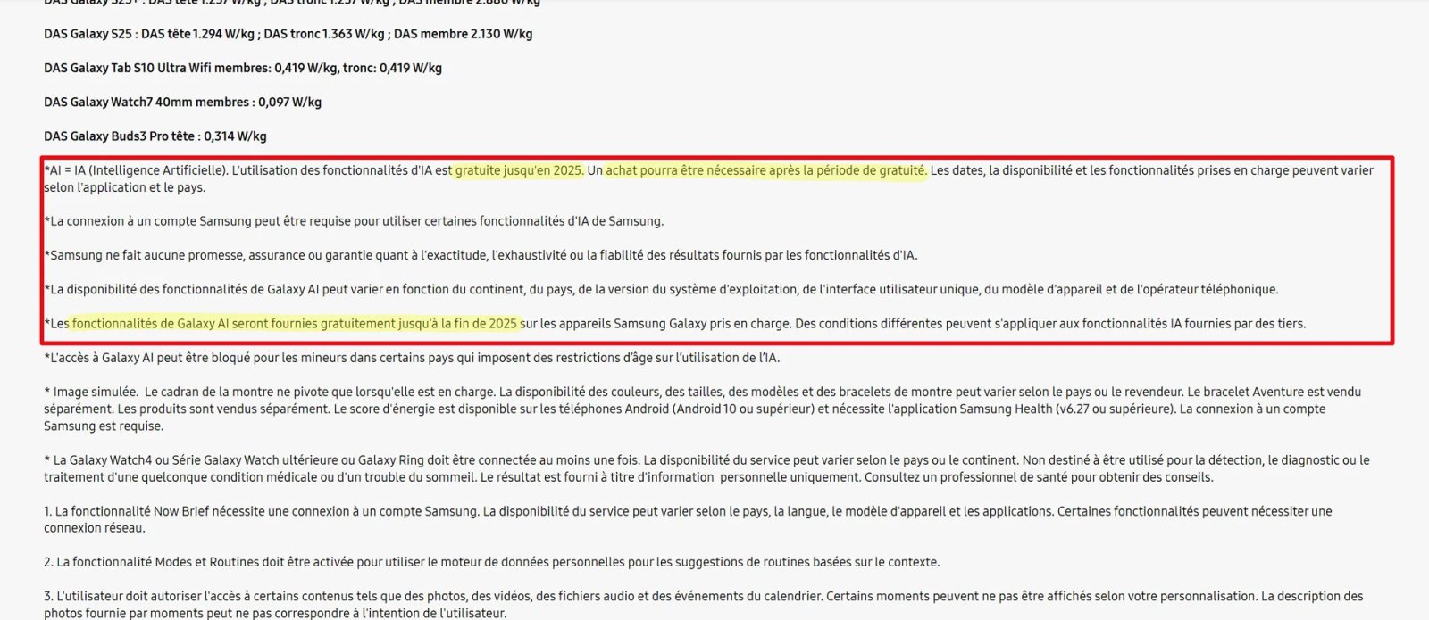 Prendemos a respiração por nada. Desde o lançamento do Galaxy S24, a espada de Dâmocles da mudança para o pago paira sobre os usuários. Se a Samsung havia comunicado oralmente no verão passado sobre a manutenção do acesso gratuito, as condições gerais de uso (CGU) permaneceram vagas e ainda exibiam esse prazo fatídico.