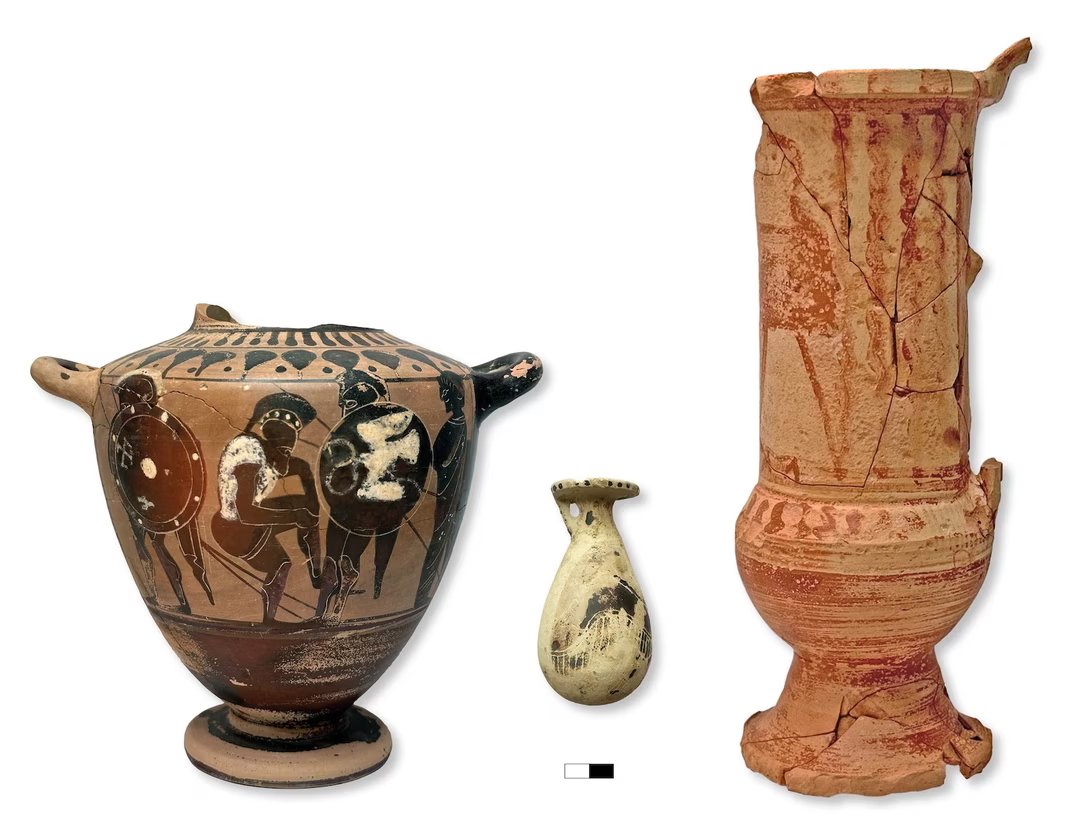 Hidrias de figuras negras, alabastro coríntio e vasos rituais locais: estes objetos, depositados há quase 3.000 anos, testemunham a intensidade do culto praticado neste esquecido santuário grego. © ΕΑΣΕ (2023)