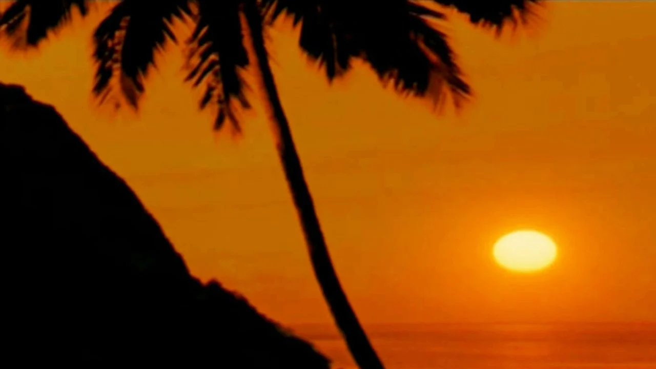 Caso contrário, temos direito apenas a uma sucessão de planos abertos. Palmeiras em meio a uma tempestade, ondas, tubarões, um pôr do sol e um arquipélago em forma de caveira.