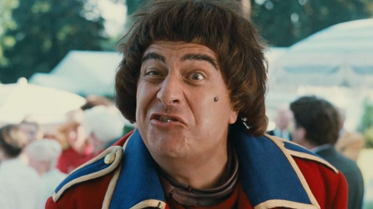 A sequência que nos interessa ocorre cerca de 10 minutos de filme, no momento em que Jacquouille e Dame Ginette estão no supermercado onde as escapadas da primeira mantêm os funcionários ocupados enquanto a segunda furta. Nesta ocasião, o escudeiro de Godefroy apodera-se de um enorme atum rabilho e depois, observando o animal ainda mais de perto, grita: