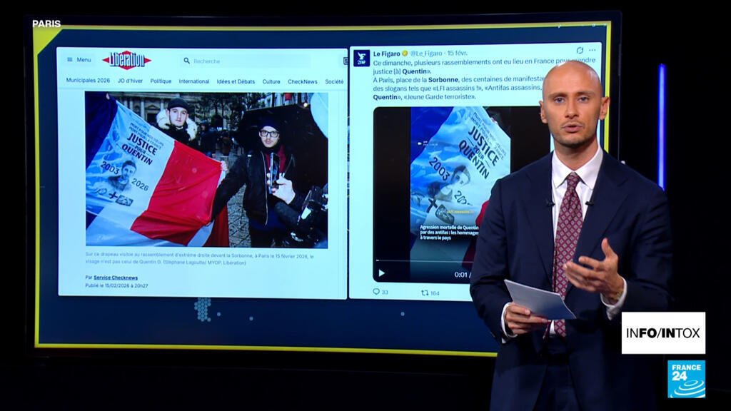 A sua morte chocou a classe política, unânime em condenar o linchamento sofrido por Quentin Deranque na quinta-feira passada em Lyon por “ativistas de ultraesquerda”, segundo o governo, e que causou a sua morte no sábado. Mas, desde então, têm circulado inúmeras falsidades, especialmente no que diz respeito à sua imagem ou à alegada explosão de violência que o caso desencadeou. Descriptografia em Info Intox com Jules BOITEAU.