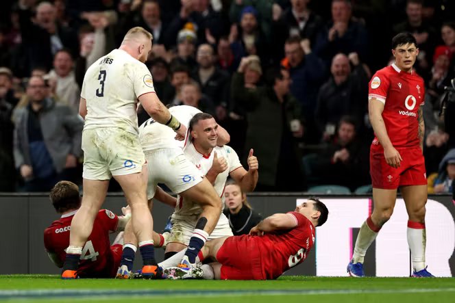 É um início de Torneio das Seis Nações tão ideal quanto o esperado para o XV de la Rose. Enfrentando um fraco time do País de Gales, no sábado, 7 de fevereiro, a Inglaterra venceu em seu estádio de Twickenham ao marcar sete tentativas (48-7) e assim assumiu a liderança do ranking, à frente do XV francês graças a uma melhor diferença entre pontos marcados e pontos sofridos.