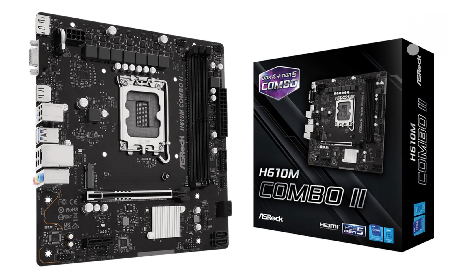 Em termos de dimensões, por fim, trata-se de um cartão no formato microATX medindo 22 x 20,3 cm. Este novo ASRock H610M COMBO II é, portanto, menor que o primeiro ASRock H610M COMBO (24,4 x 24,4 cm) que incluía quatro slots DDR5 e dois slots DDR4.