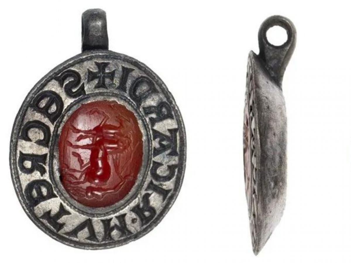 Contudo, a associação de uma pedra de origem antiga a um suporte medieval não é uma simples curiosidade. Na Idade Média, os entalhes romanos eram amplamente valorizados pela sua qualidade estética e técnica. Usadas como selos, joias ou amuletos, essas gemas circulavam por redes mercantis ou podiam ser descobertas acidentalmente durante trabalhos agrícolas. No entanto, são raros os exemplos em que são deliberadamente integrados em objectos medievais funcionais, ainda mais quando são desta qualidade.