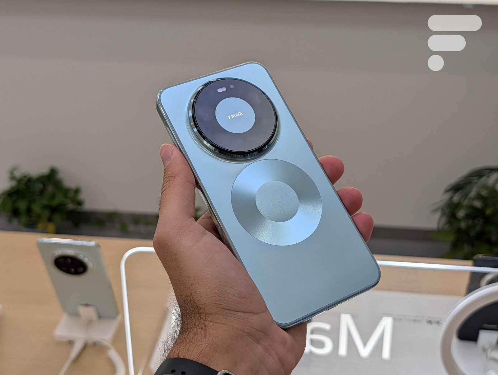 Também na demonstração por trás, notamos imediatamente os dois grandes círculos. Um é simplesmente o imponente módulo fotográfico, o outro é puramente estético. Porém, além da simetria criada com o primeiro, permite saber onde está localizada a bobina de carregamento sem fio do Huawei Mate 80 Pro Max. É uma pena que não vá mais longe: tal design sugere que o carregamento magnético sem fio está disponível, como um MagSafe ou um Pixelsnap. Mas esse não é o caso. Sem ser chocante, esse círculo é rapidamente percebido mesmo assim.