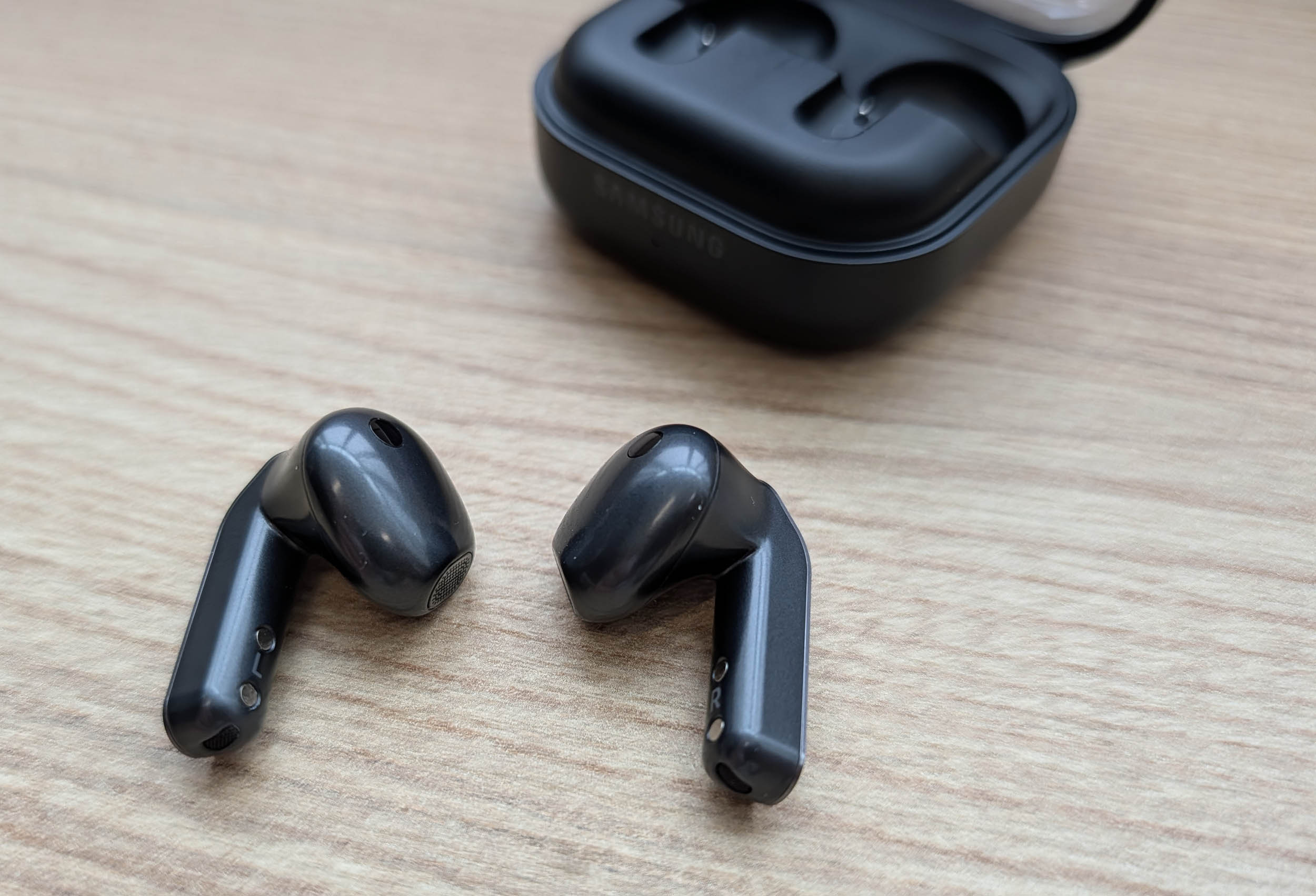 Para autonomia, cada fone oferece bateria de 45 mAh para até 5 horas de autonomia com ANC, 6 horas sem, e entre 24 e 30 horas com case de 515 mAh. Você pode carregá-los com um cabo USB-C ou Qi sem fio, se tiver um. É uma pena que as funções de IA e Galaxy sejam limitadas fora do ecossistema Samsung, mas a experiência geral permanece satisfatória.