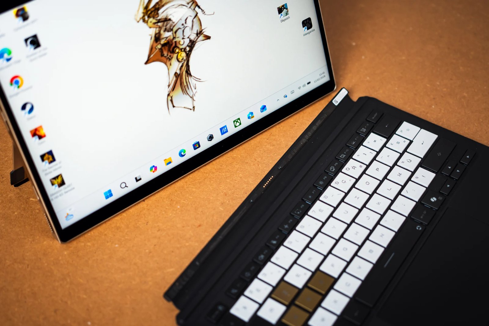Como lembrete, o princípio do ROG Flow é um pouco especial no cenário de jogos para PC. É na realidade um tablet rodando Windows 11, ao qual você pode anexar um teclado magnético e alimentado por um SoC dopado na parte GPU, ao invés de uma placa gráfica dedicada como podemos ver mais tradicionalmente em PCs voltados para jogos. Resumindo, é um pouco o mesmo princípio de um Switch ou Steam Deck, se você quiser, mas com um domínio mais pronunciado do PC, já que o teclado e o trackpad são fornecidos e a interface do Windows 11 empurra menos para a seção de console da coisa.