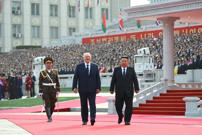 Uma cerimónia de boas-vindas ao Sr. Lukashenko foi realizada na Praça Kim Il-sung, com o Sr. “recebido com alegria” o líder bielorrusso, segundo a agência de notícias oficial norte-coreana KCNA. Lukashenko foi ao Palácio do Sol Kumsusan, onde repousam os corpos embalsamados do pai e do avô de Kim Jong-un, para prestar suas homenagens, cercado por altos funcionários norte-coreanos, segundo a KCNA. Ele colocou um buquê em nome do presidente russo, Vladimir Putin.