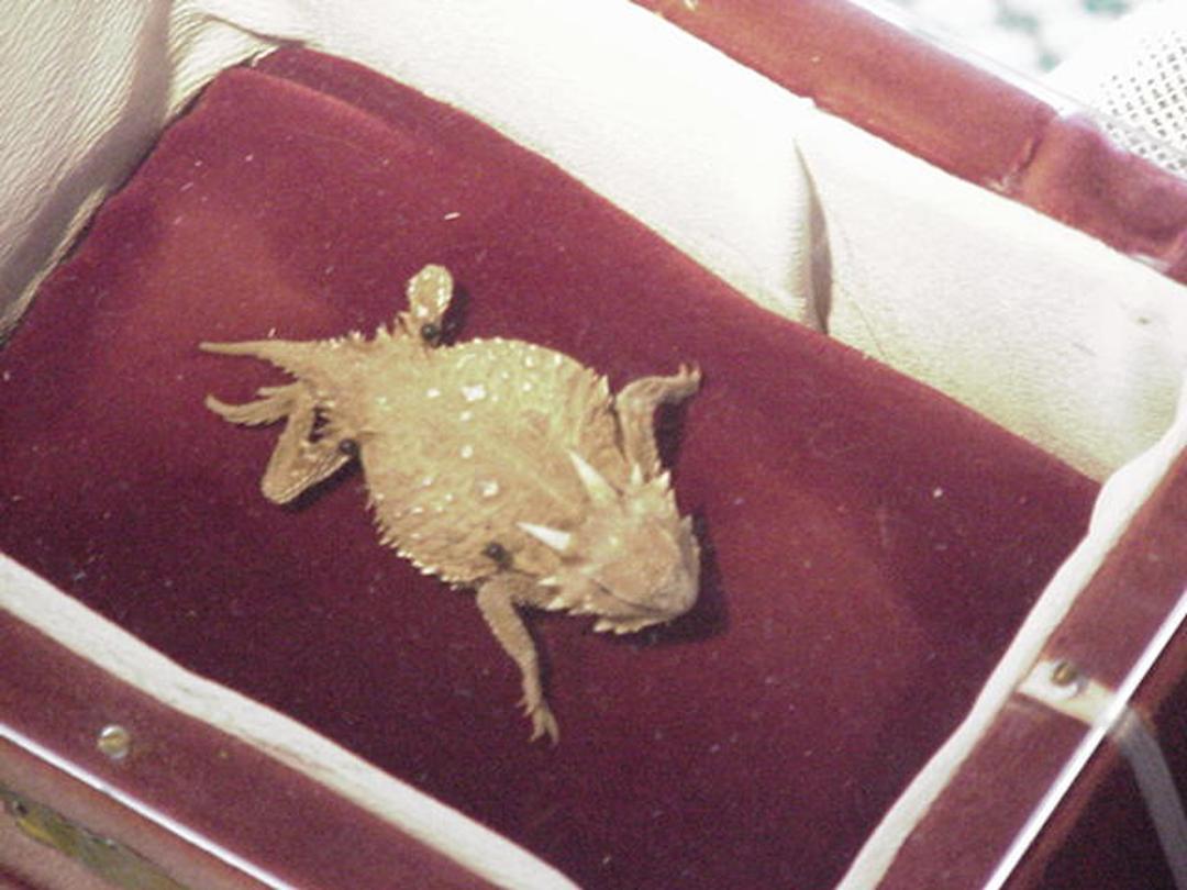 Testemunhas disseram que ele ainda estava se contorcendo quando o juiz o pegou pelo rabo. No ano seguinte, o sapo com chifres teria recuperado as forças, conhecido o presidente Calvin Coolidge e depois terminado seus dias congelado em uma varanda. Seus restos mortais empalhados, ainda à vista no Tribunal do Condado de Eastland, estão em um pequeno caixão forrado de veludo.