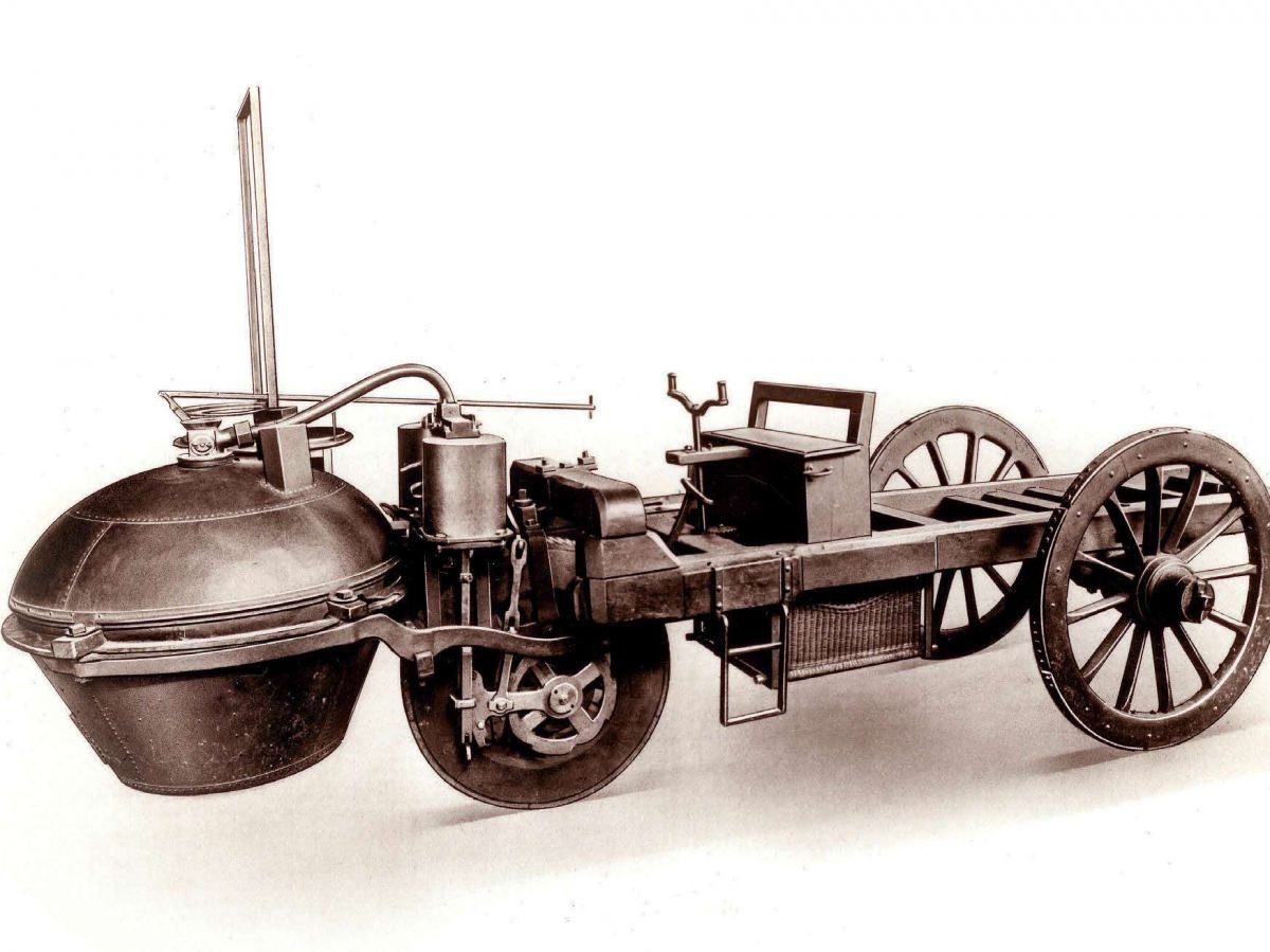 No século XVIII, esta carroça movida por uma máquina a vapor era usada para mover canhões. Uma máquina inovadora que prefigura automóveis com motores de combustão interna.