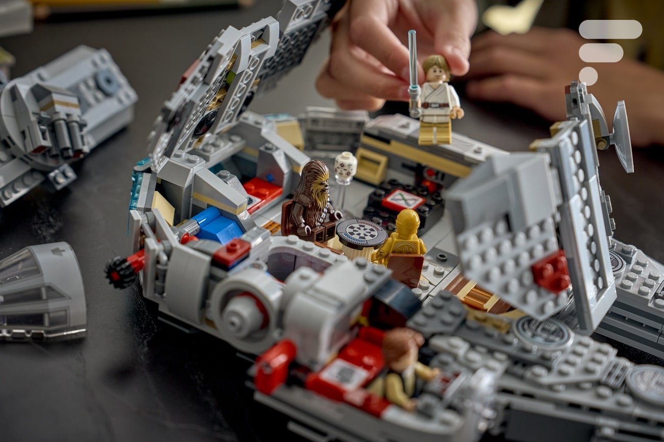 Portanto, encontraremos uma nova versão do Millennium Falcon de 885 peças com quatro minifiguras compatíveis com Smart Play (Luke Skywalker, Han Solo, C-3PO e Chewbacca), bem como quatro tijolos planos Smart Tiles para permitir que o Smart Brick interaja com o lançador de mísseis, motor ou propulsão de Luke.