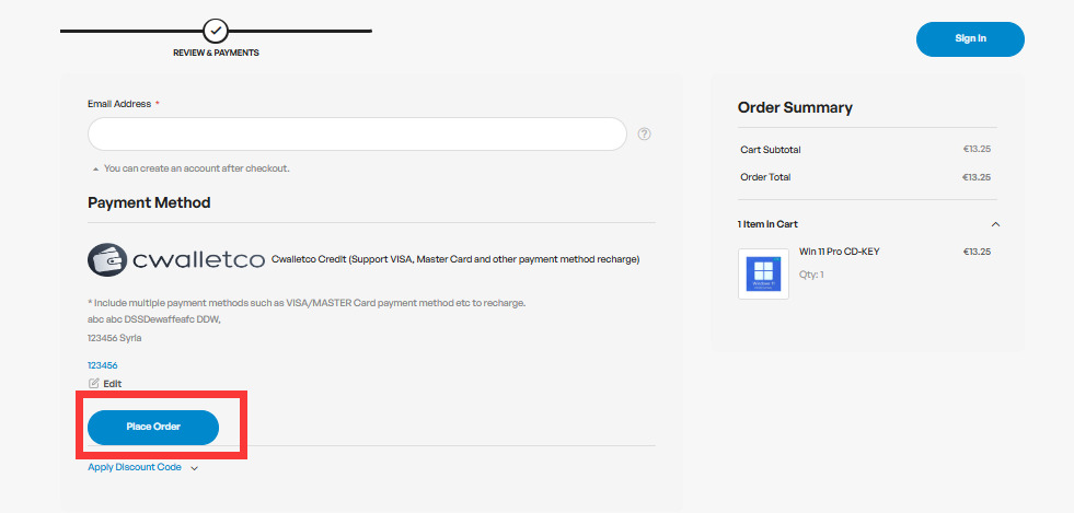 Adicione o produto ao carrinho e clique em “Proceed To Checkout” para finalizar seu pedido