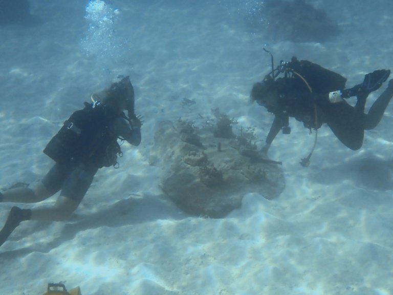 Mostra uma colônia de 15 cm começando a crescer sobre um coral tabular – corais formando grandes superfícies horizontais – mortos, derrubados pela tempestade. Se todo o topo do recife foi arrasado, abaixo, as colônias resistiram e os corais espalhados na areia estão voltando a crescer. “Lá vamos nós de novo”, alegra-se o pesquisador.