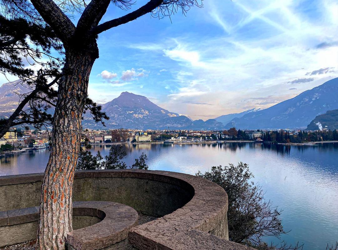 Desta varanda de pedra o olhar desliza pela imensidão azul, entre o brilho do lago e as montanhas que vigiam o infinito. Aqui a geografia torna-se poesia: falésias e colinas entrelaçam-se, esculpidas ao longo de milénios, oferecendo um mosaico de relevos e luzes. eu’ÁRVOREem vigília tranquila, prolonga o silêncio mineralcomo uma pontuação na paisagem. Tudo convida à contemplação: a beleza crua, a verticalidade do lugar, a doçura do ar que une a pedra ao céu. A partir daqui, o Lago de Garda revela seus números excepcionais: 52 quilômetros de extensão, até 346 metros de profundidade e uma superfície situada a 65 metros de altitude. Esse espelho imensa, escavada pelo gelo e pelo tempo, liga as montanhas ao céu e prolonga, mesmo na sua grandiosidade, a poesia da paisagem.