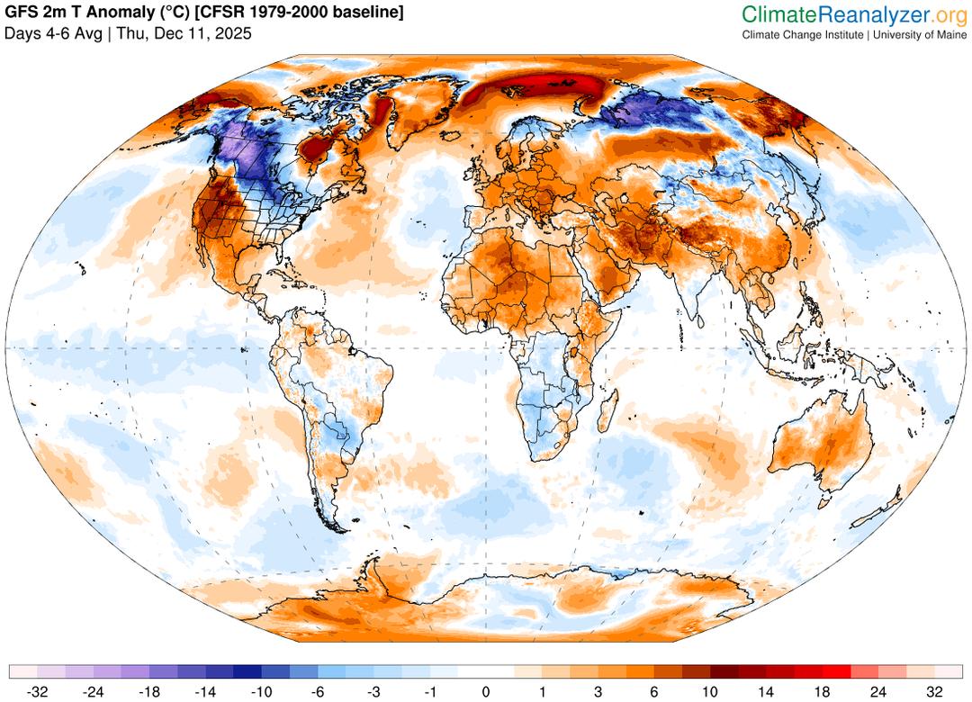 Esta situação surpreendente, com múltiplas descidas de ar polar sobre o Canadá e notável suavidade na França, deverá persistir por mais uma semana a 10 dias.