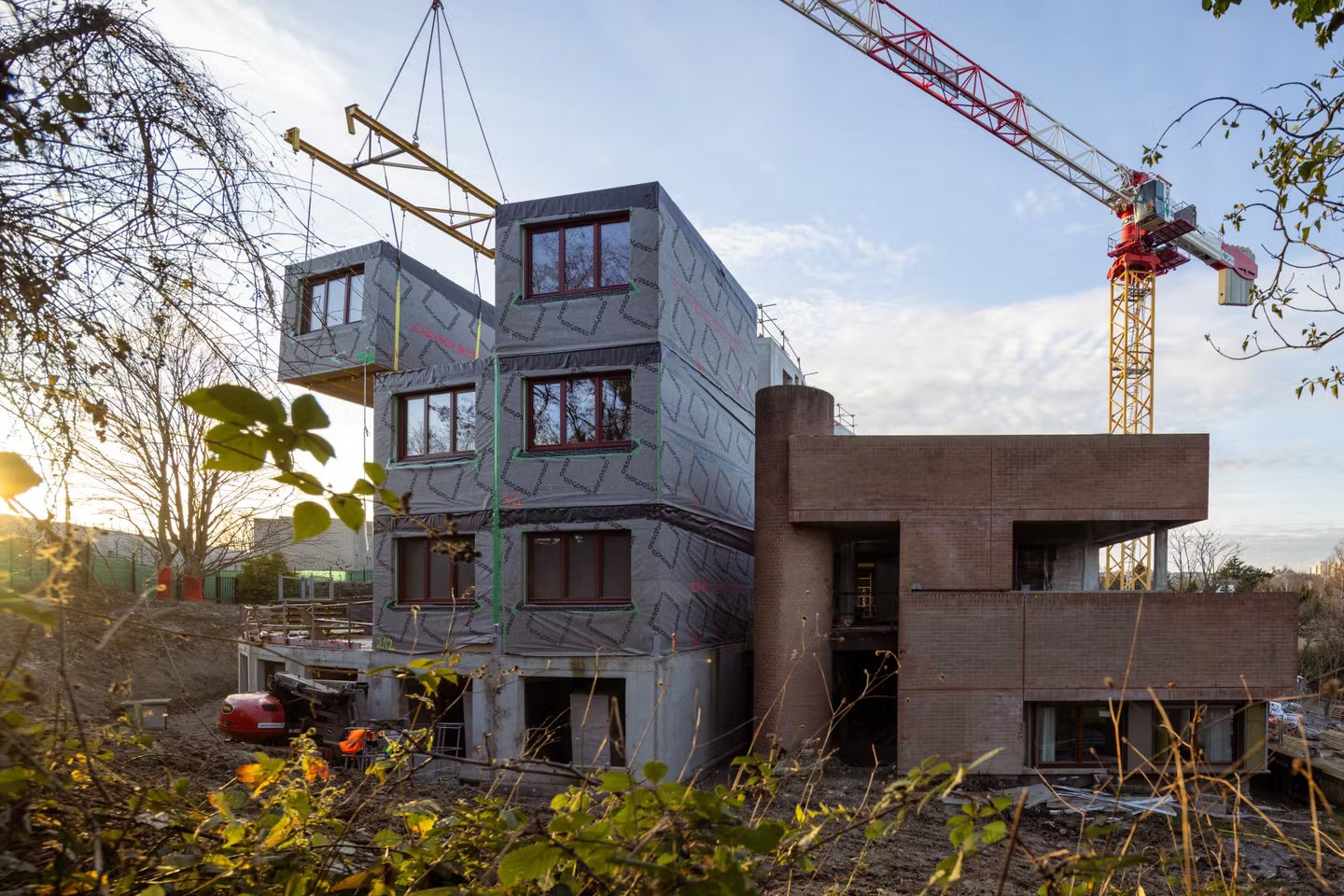 Estamos em Rosny-sous-Bois (Seine-Saint-Denis), no local da antiga sede do centro de informação rodoviária Bison futé. O edifício, uma estranha construção em forma de arco cuja estrutura de betão revestida a tijolo e janelas reflectoras marcam a década de 1980 que o viu nascer, foi preservado. Mas está prestes a duplicar de tamanho para acomodar uma residência de 169 unidades habitacionais para uma população, a maioria de origem maliana, que vive actualmente num albergue de trabalhadores em ruínas e mal conservado.