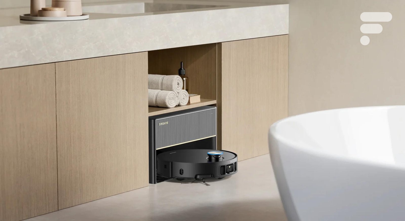 O robô também vem com uma base 8 em 1 verdadeiramente completa, um verdadeiro centro de controle compacto que, graças ao seu formato retangular e à sua altura de 24,9 cm, pode ser integrado harmoniosamente num móvel da sala, da cozinha ou mesmo do banheiro. E esta base não fica ociosa: enche automaticamente o depósito com água e solução de limpeza, limpa as esfregonas com água quente a 80°C antes de as secar automaticamente (essencial para minimizar os maus odores e evitar o desenvolvimento de bolores), esvazia a água durante 100 dias e encarrega-se de esvaziar e recarregar o robô. Resumindo, uma base que facilita claramente a manutenção do aparelho.