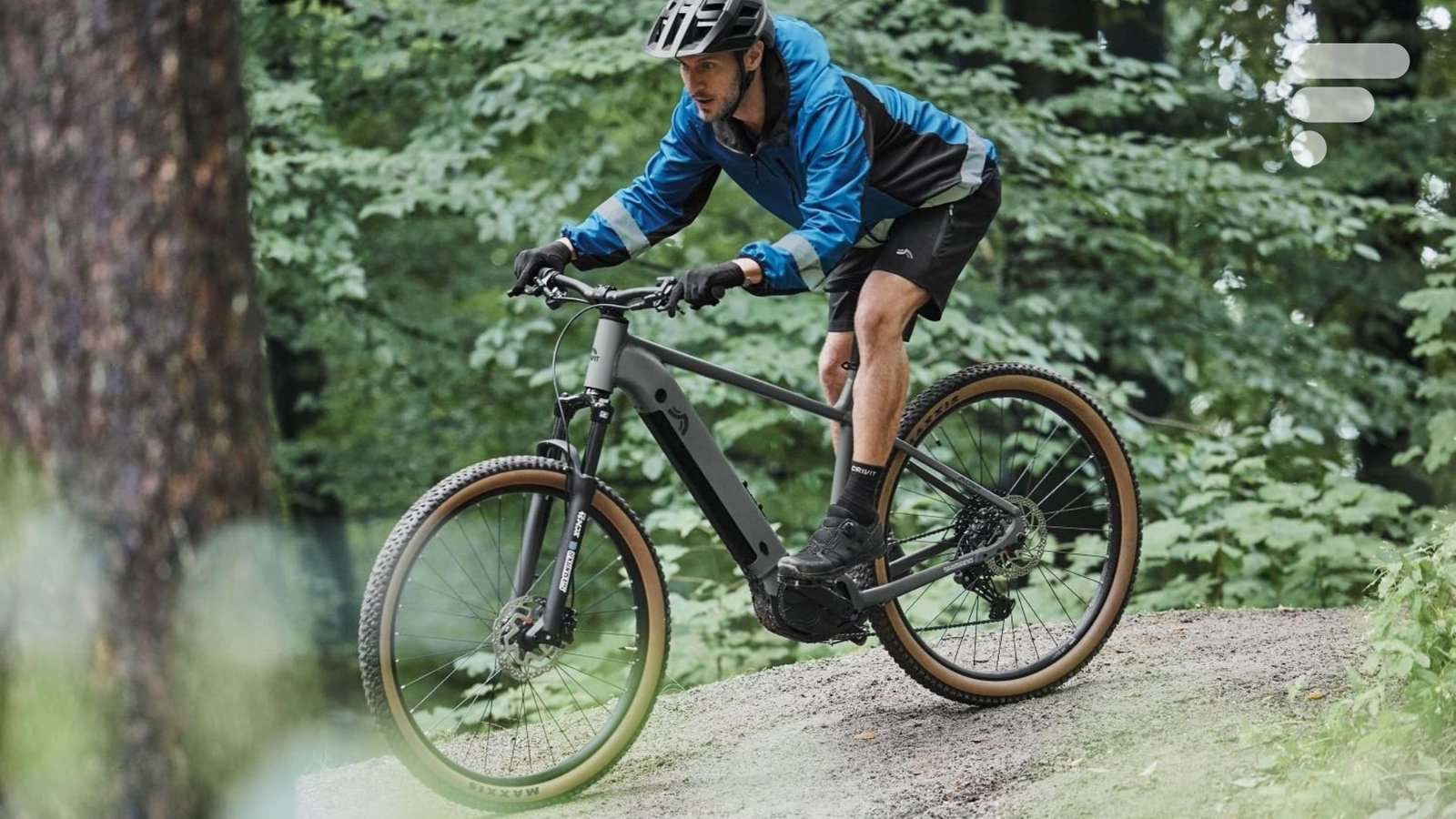 No Crivit Peak 709, encontramos uma bateria de 709 Wh integrada no tubo inferior. Mas é removível, o que permite carregá-lo em casa ou no trabalho. Sobre isso, a marca anuncia autonomia de até 120 km no modo Eco, em condições favoráveis. No modo Race ou se você usa o modo Boost com frequência, deve almejar uma longa manhã de uso, que no entanto permaneça muito confortável. Na frente você encontra um garfo SR Suntour XCM34 Boost.