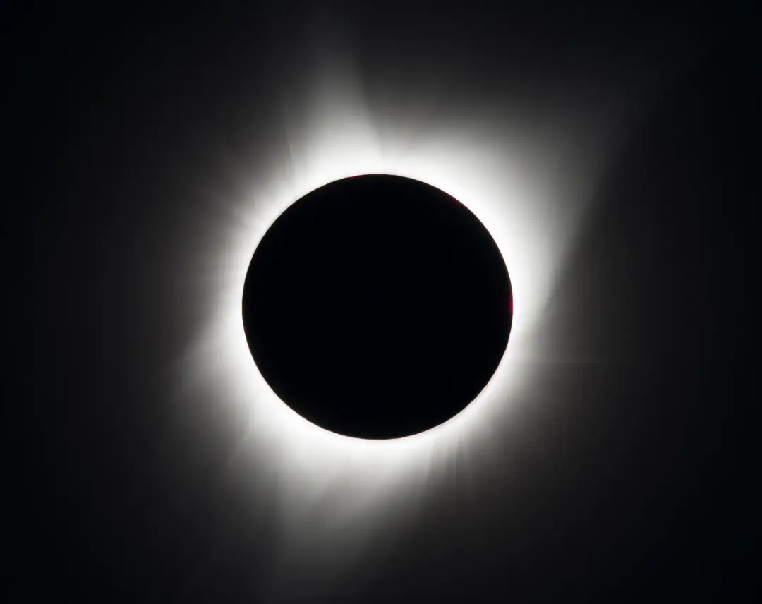 Esta imagem de um eclipse solar, onde o disco lunar obscurece completamente o disco solar, é autêntica. É compartilhado pela NASA, indicando que é uma imagem do eclipse de 21 de agosto de 2017. © NASA, Aubrey Gemignani