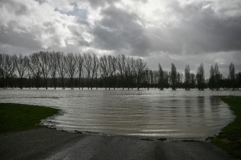 Em direção a Marmande, a enchente transformou um parque em uma imensa extensão de água, 12 de fevereiro de 2026 (AFP – Philippe LOPEZ)