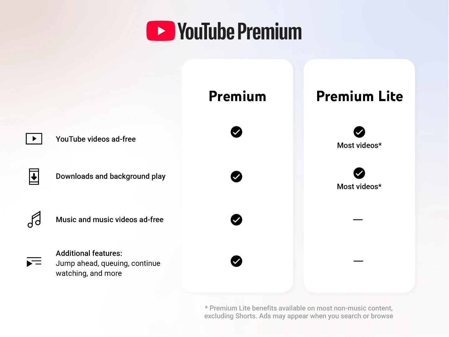 O Google melhora a fórmula do YouTube Premium Lite adicionando duas funções muito interessantes: reprodução em segundo plano e download de vídeos. Novas funcionalidades que enriquecem uma oferta que já permitia visualizar os conteúdos da plataforma (excluindo música) sem publicidade.