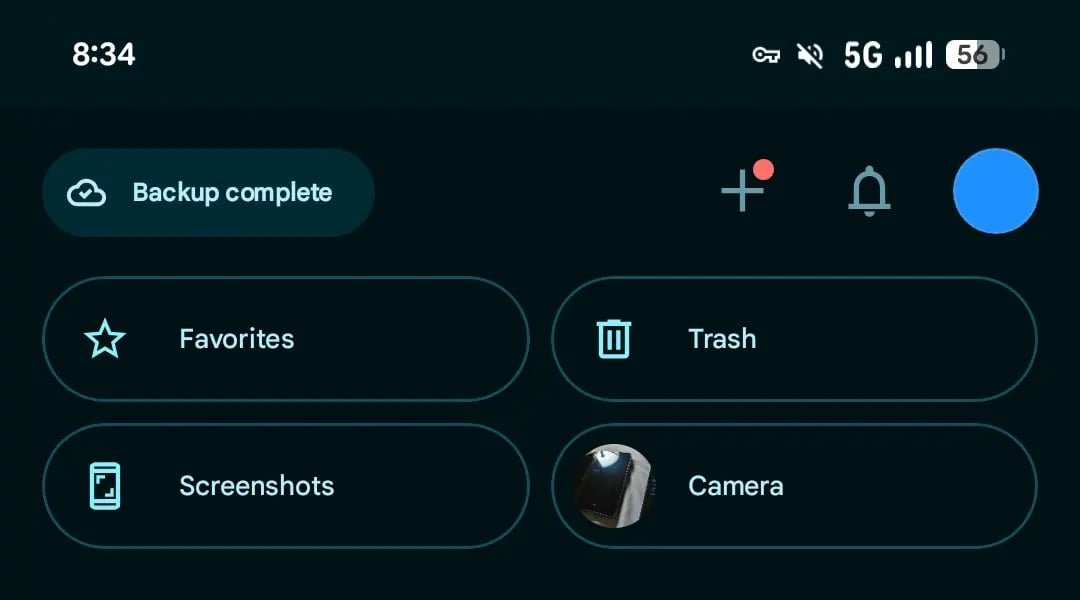 Até agora, a guia Coleções exibia quatro botões (em um quadrado 2×2) na parte superior da página para atalhos. Os dois primeiros locais foram reservados para favoritos e lixeira, e os outros dois adaptaram seu conteúdo com base nos álbuns ou pastas mais visualizados. O Google agora está testando uma abordagem diferente com um carrossel de cartões vertical. Cada cartão exibe uma imagem de retrato do álbum, com um ícone redondo e o nome da pasta correspondente.