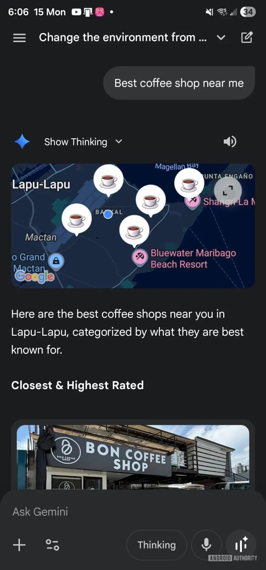 Procurar um restaurante, café ou local em Gemini já não dá a mesma resposta.