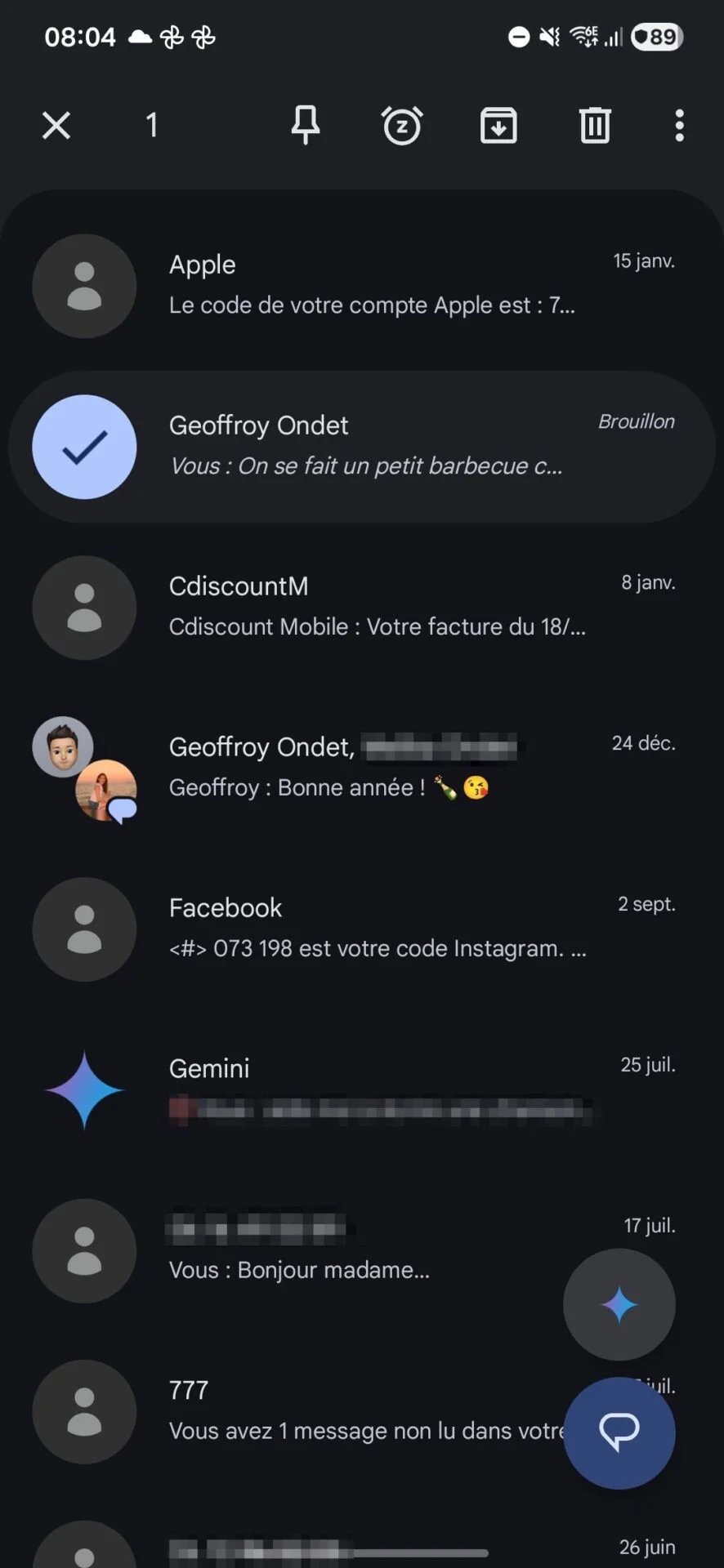 Sem qualquer ação adicional de sua parte, ele permanecerá armazenado por cerca de trinta dias, antes de ser excluído permanentemente. Um período que, em princípio, é longo o suficiente para permitir que você restaure uma discussão que excluiu involuntariamente. No entanto, o sistema só se aplica a conversas e não a mensagens individuais. A exclusão de uma ou mais mensagens dentro de uma conversa permanece irreversível.