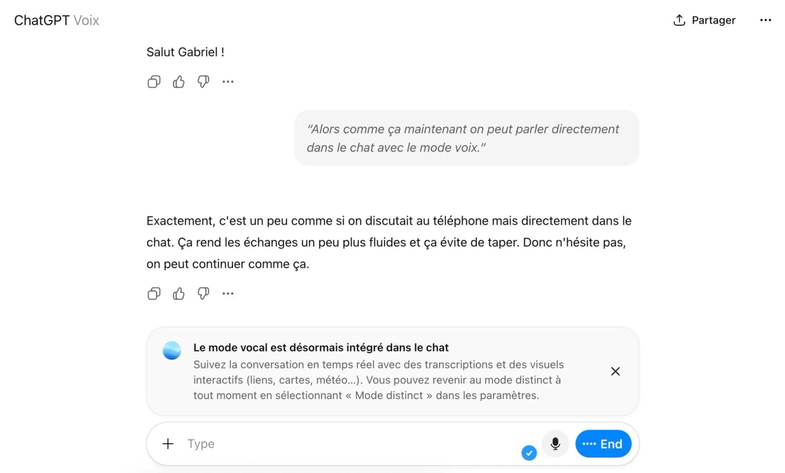 Agora você pode usar o ChatGPT Voice diretamente no chat – não é necessário um modo separado.