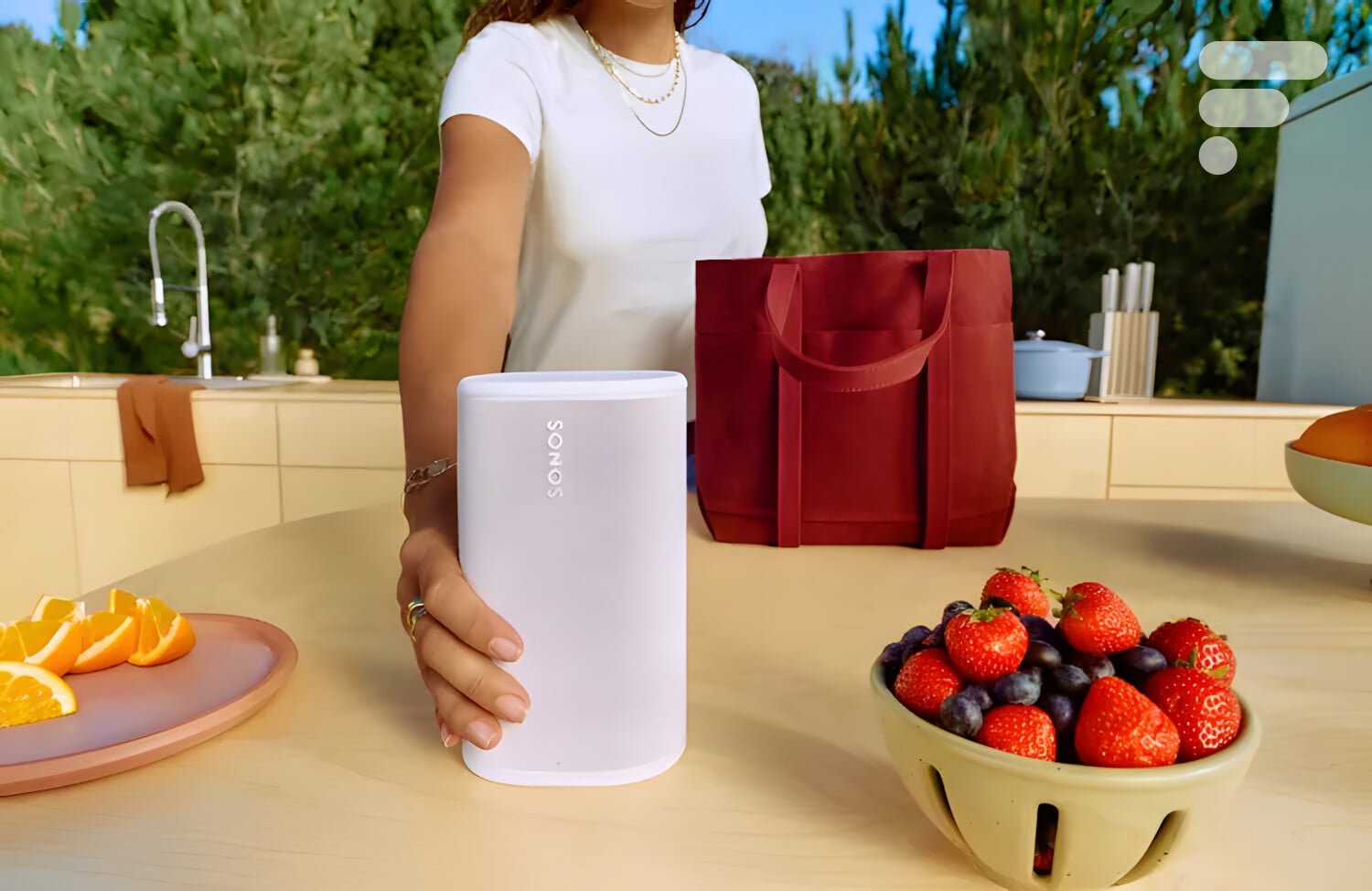 A função TruePlay automática ajusta continuamente o EQ dependendo do ambiente em que você está, o que ainda é útil se você se movimenta muito. Por fim, para autonomia, a Sonos anuncia até 24 horas de reprodução contínua, o que é honesto mesmo que menos que as 28 horas de um JBL Charge 6. Observe que o próprio alto-falante pode ser usado como banco de potência através de sua porta USB-C localizada na parte traseira. Por outro lado, não há adaptador de alimentação de 18 W fornecido na caixa.