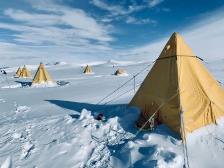 Tendas instaladas no local durante a campanha 2019-2020. Créditos: Jenna Epifanio/Universidade Estadual de Oregon