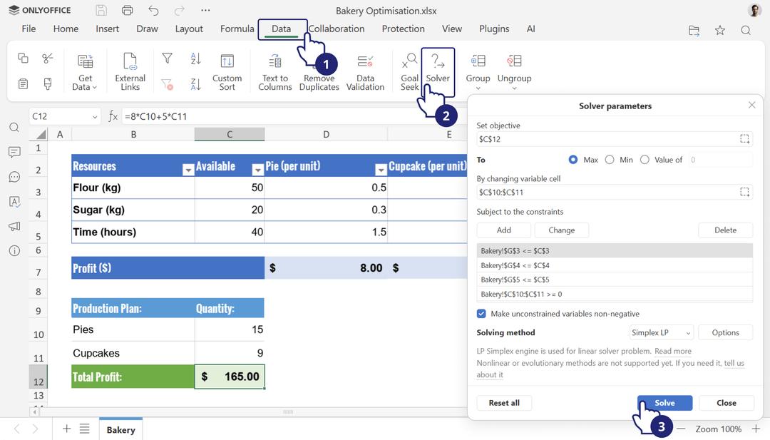 Com a opção “Solver”, as tabelas dinâmicas agora são mais fáceis de gerenciar e usar. © ONLYOFFICE