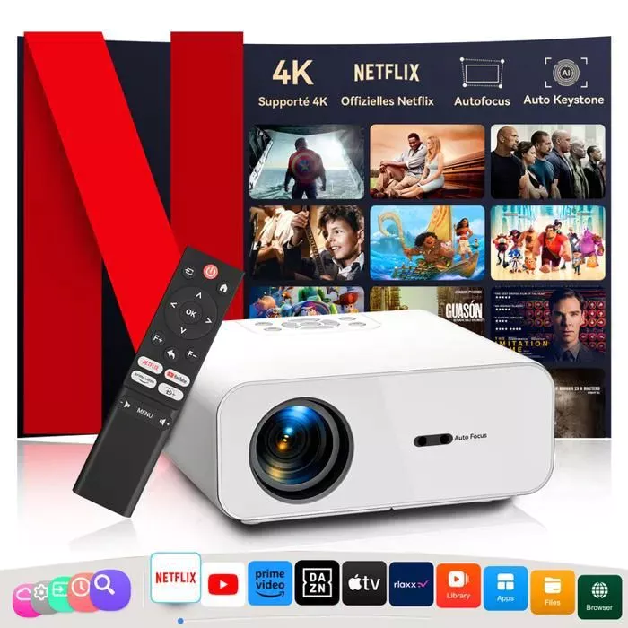 【Netflix certificado/foco automático】 Projetor de vídeo 4K compatível, projetor WiFi inteligente Bluetooth5.2, projetor de vídeo 26000 lúmen 1080Pa partir de 134,99€ no Cdiscount