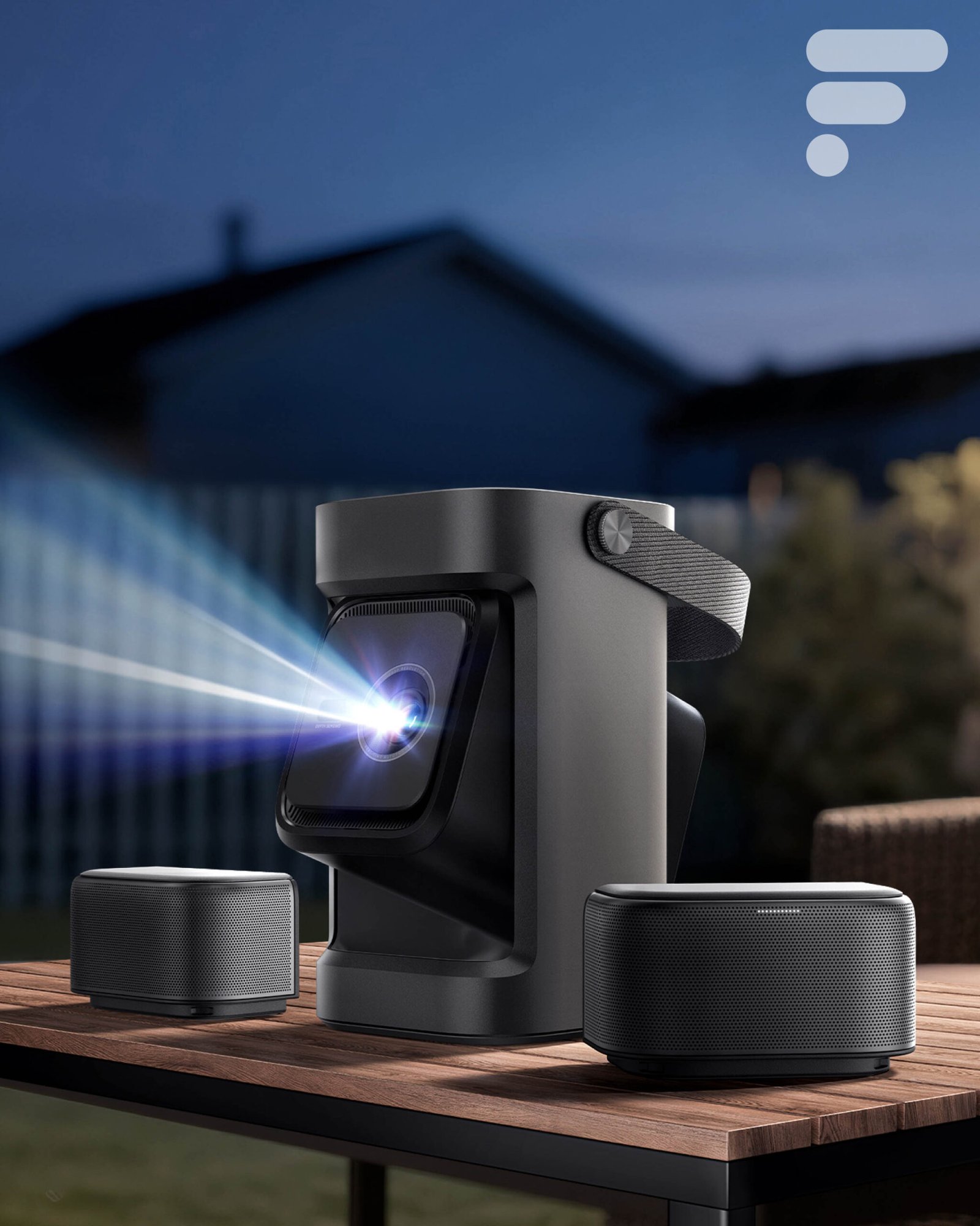 Um dos pontos destacados pela Soundcore diz respeito ao sistema de áudio: o P1i adota um alto-falante “flip” de 20 W, cuja orientação pode ser ajustada para otimizar a difusão sonora dependendo da posição do público. Está bem pensado. Isto deverá permitir melhorar a percepção do diálogo e dos efeitos sonoros sem utilizar sistematicamente um altifalante externo.