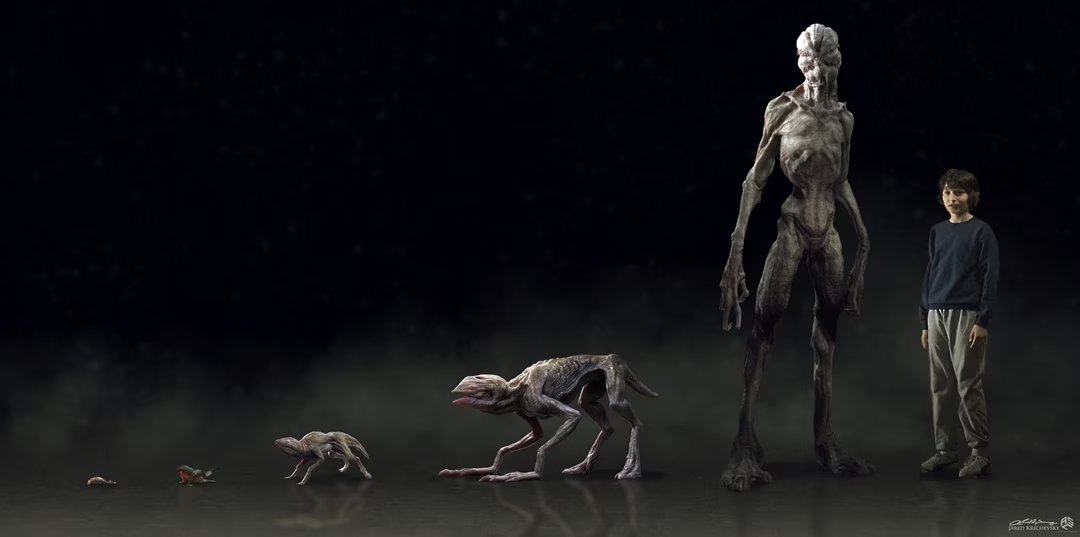 Primeiro temos o girinodo tamanho de uma mão humana, depois uma coisa parecida com um sapo, antes de chegar a algo um pouco mais monstruoso, lembrando uma miniatura do Demogorgon adulto. Aqui, a parte anfíbia desaparece em favor de um aparecimento de saurianocom cauda de lagarto, patas traseiras mais fortes e acima de tudo esta boca em forma de pétala que permanece inclassificável.