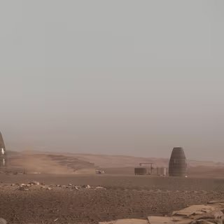 Conceito de habitat em Marte desenvolvido pela AI. Fábrica Espacial. © IA. Fábrica Espacial