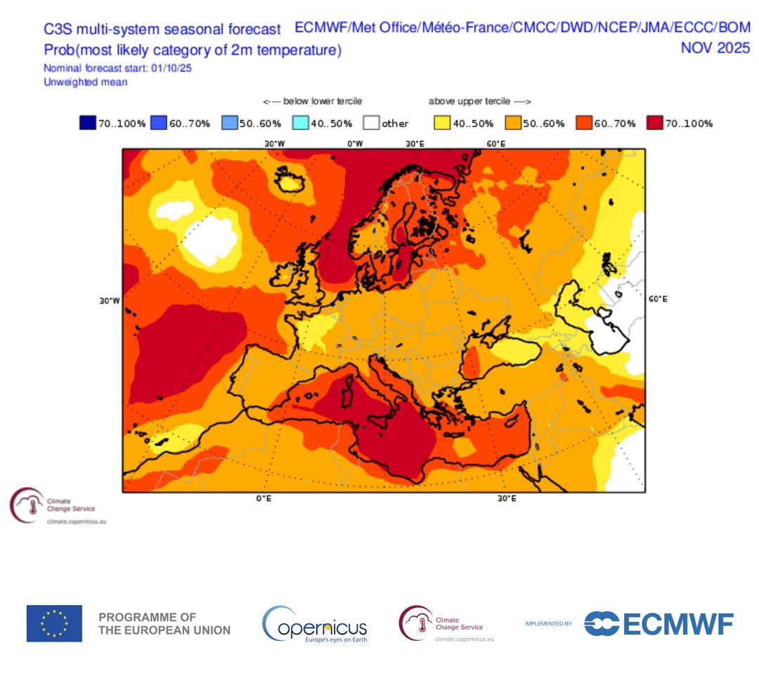 A segunda parte de Novembro permanece muito incerta: até à data, a maioria dos modelos meteorológicos prevê uma calmaria, com um regresso a temperaturas bastante amenas. No entanto, este regresso à calma não parece muito estável, sendo muito provável que o período entre meados de Novembro e finais de Novembro ainda seja marcado por alguns episódios de clima mais turbulento. O risco é maior no sudeste devido a esta época do ano que é muito propícia a episódios mediterrânicos. De qualquer forma, atualmente não se espera nenhuma onda de frio precoce durante o mês de novembro.