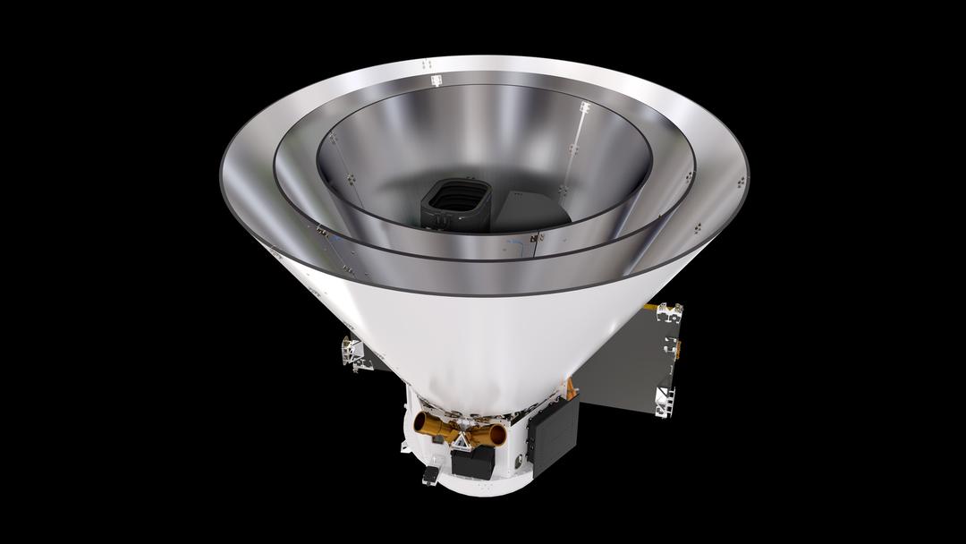 Os espelhos SPHEREx são protegidos por três escudos concêntricos, destinados a evitar o fluxo excessivo de luz em direção aos instrumentos. © NASA, JPL-Caltech