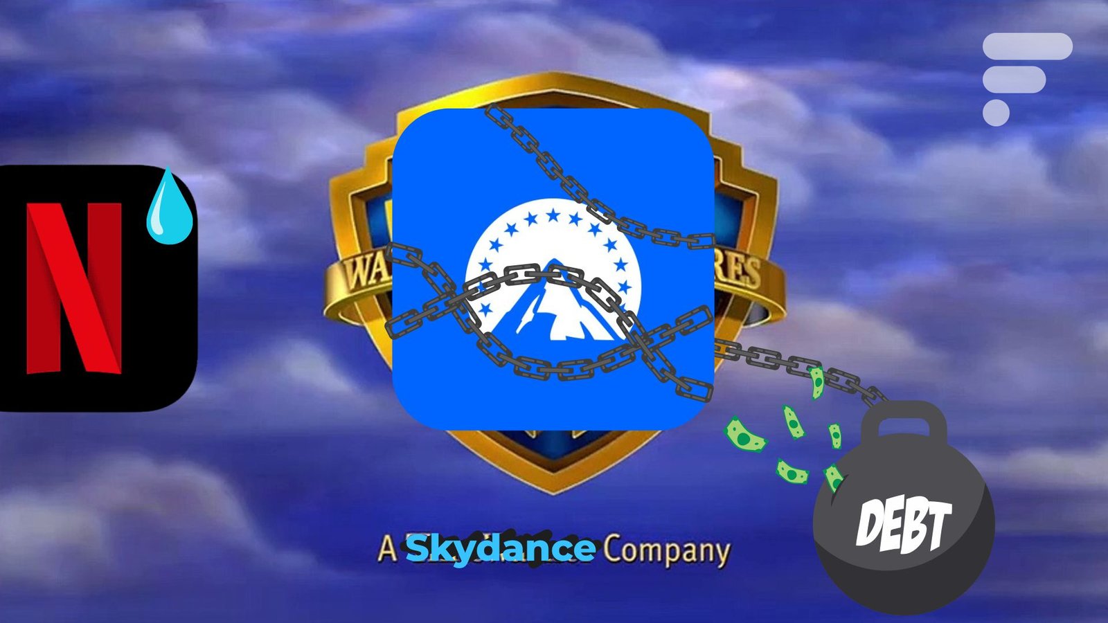 Se a fusão e aquisição falharem, a Paramount terá que assinar um cheque de US$ 7 bilhões para a Warner em taxas de dissolução. Se as autoridades da concorrência derem luz verde, provavelmente não será melhor para a Paramount, que se verá com uma montanha de dívidas para pagar.