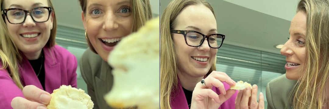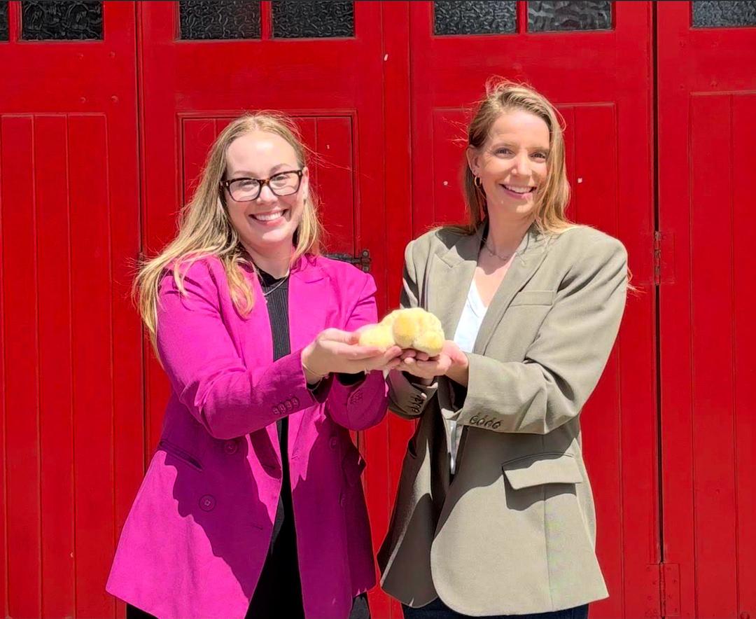 As médicas Sara Webb e Rebecca Allen seguram o recém-cultivado cogumelo juba de leão. © Foto cedida pelos autores. CC POR