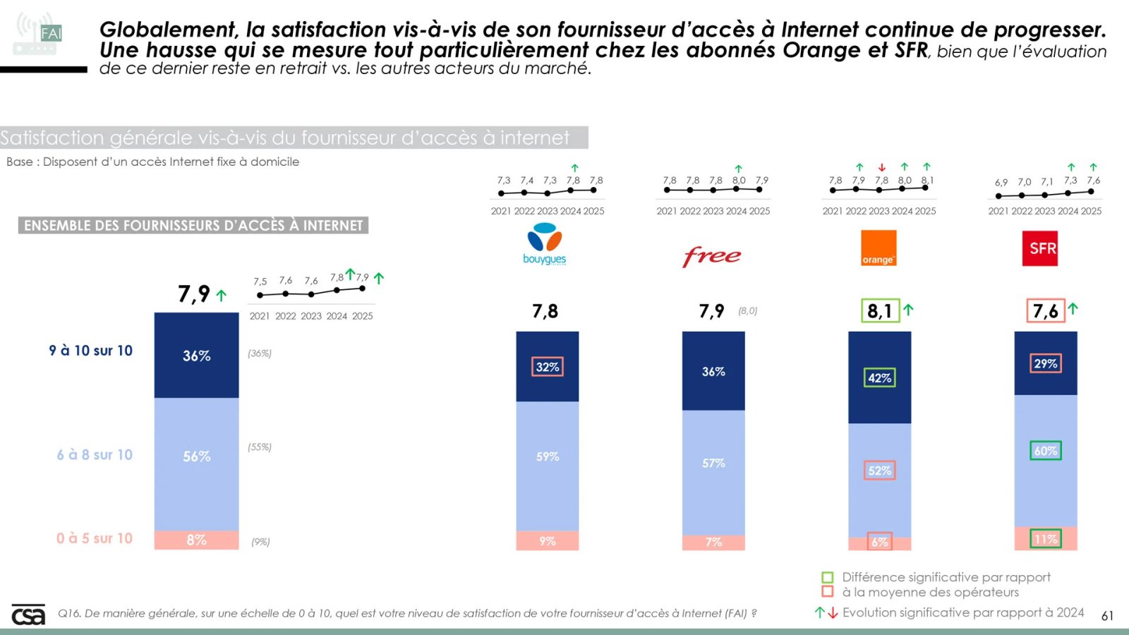 Deveríamos nos arrepender da nossa antiga conexão de cobre? Absolutamente não. A edição 2026 do observatório de satisfação do cliente Arcep é clara: a tecnologia muda tudo. Embora os obstinados em ADSL dêem uma classificação média muito aceitável de 7,0 de 10 Quando se conectam, os assinantes de fibra nadam de felicidade com uma pontuação de 7,9. Estabilidade, rendimento, latência: a lacuna técnica está aumentando e justifica plenamente a mudança forçada para um rendimento muito elevado.